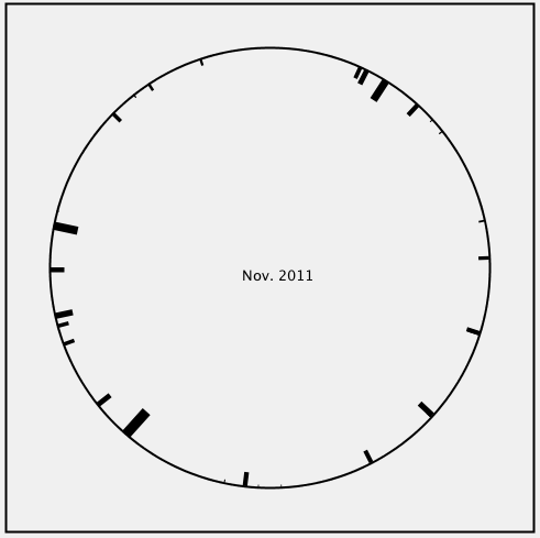 Next I looked at just one month and added a dimension of distance to elevation to see if there was a correlation between the two - there wasn't, but the infographic is striking in it's simplicity.
